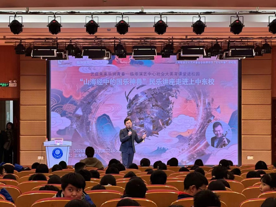临港演艺中心还和洽上海临港文化艺术基金会,运筹帷幄推出“艺启昔时 乐润芳华——临港演艺中心社会大好意思育课堂进校园”行径。3月17日,该行径首场走进上中东校,胡晨韵为同学们教育国乐与电辅音乐的会通之说念,共享《穿越·山海经》创作理念,现场演示唢呐演奏手段,让青少年近距离感受国乐的魔力。
