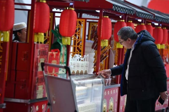 步入阛阓,浓郁的“京”彩年味扑面而来。全聚德、张一元、紫光园等一众老字号摊位前,琳琅满盘算推算特产蛊卦着来来相似的搭客。