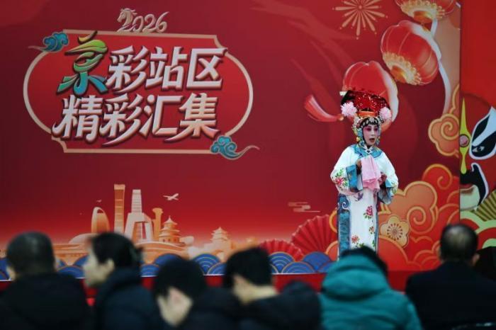 行至“站区大舞台”区域,铿锵锣饱读与飘荡唱腔引东说念主安身。一场“活力枢纽 丰台有戏”主题文艺汇演正火热演出,将熙攘枢纽变为一座莫得围墙的戏曲艺术厅。