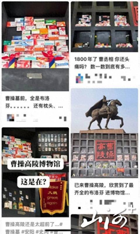 曹操高陵遗迹博物馆位于河南安阳,勾引繁密旅客远谈而来。馆内的供品柜已成为热点打卡点之一。与传统墓前常见的鲜花、香烛不同,布洛芬成了很多旅客的“格式”祭品。在酬酢平台上,不少旅客上传有关视频,并配文:“曹丞相……若是其时有了布洛芬,你就不会头疼了。”驳倒区里,有网友留言:“因为曹操头痛,于是送布洛芬;因为青梅煮酒论好汉,是以送青梅酒。”甚而还有东谈主奉上三国杀卡牌、大魏锦旗等创意祭品。