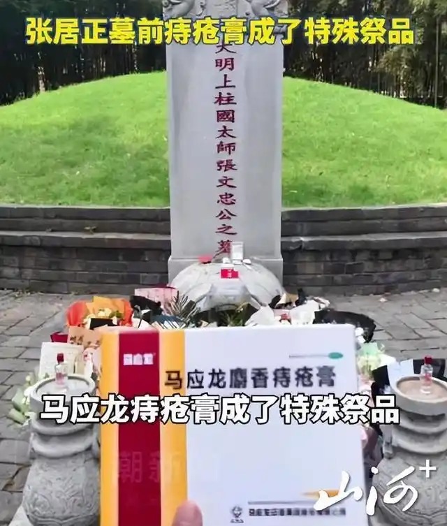 在湖北荆州张居正墓前,不少旅客留住马应龙痔疮膏——因野史纪录其死于痔疮手术后元气大伤;