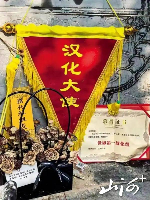 在陕西霍去病墓前,常见薯片、辣条等零食——这位23岁英年早逝的少年将军,被大学生们视为“同龄东谈主”“恰是爱吃零食的年龄”;在北魏孝文帝拓跋宏(后更名元宏)墓前,有东谈主挂上锦旗,上书“汉化大使”,还有东谈主奉上手写奖状——“最强人化组”,以嘉奖他四肢鲜卑族天子力推汉化矫正的历史事迹。